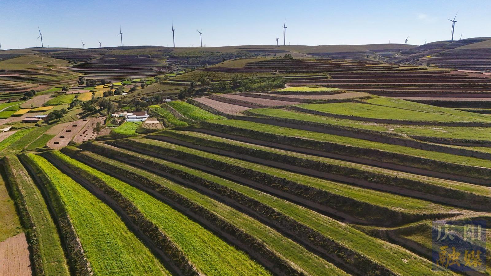 慶陽網訊(慶陽融媒記者 喬潔)初秋的環縣毛井鎮,糜子金黃、蕎麥粉白、飼草翠綠,田野斑斕交織,與遠方山脊上旋轉的風力發電機靜動相映,勾勒出和諧的秋日田園畫卷。