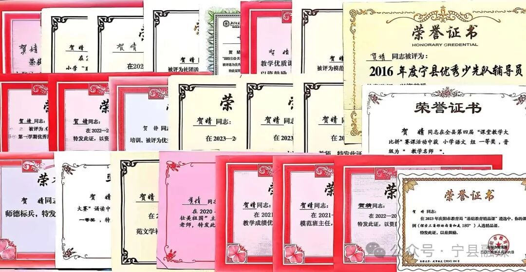 從事教育17載,賀婧始終如一地堅守著為教育事業奮斗終生的初心使命,在平凡的崗位上,做出了不平凡的成績。多年來,她所帶的班級教學成績一直名列前茅,她也先后獲得了優秀教師、優秀班主任、教學名師、學科帶頭人、模范教師、師德標兵、優秀少先隊輔導員等榮譽稱號,多次參加省市縣級優質課評比并取得優異成績。在今年教師節來臨之際,她被評為市級“模范教師”。