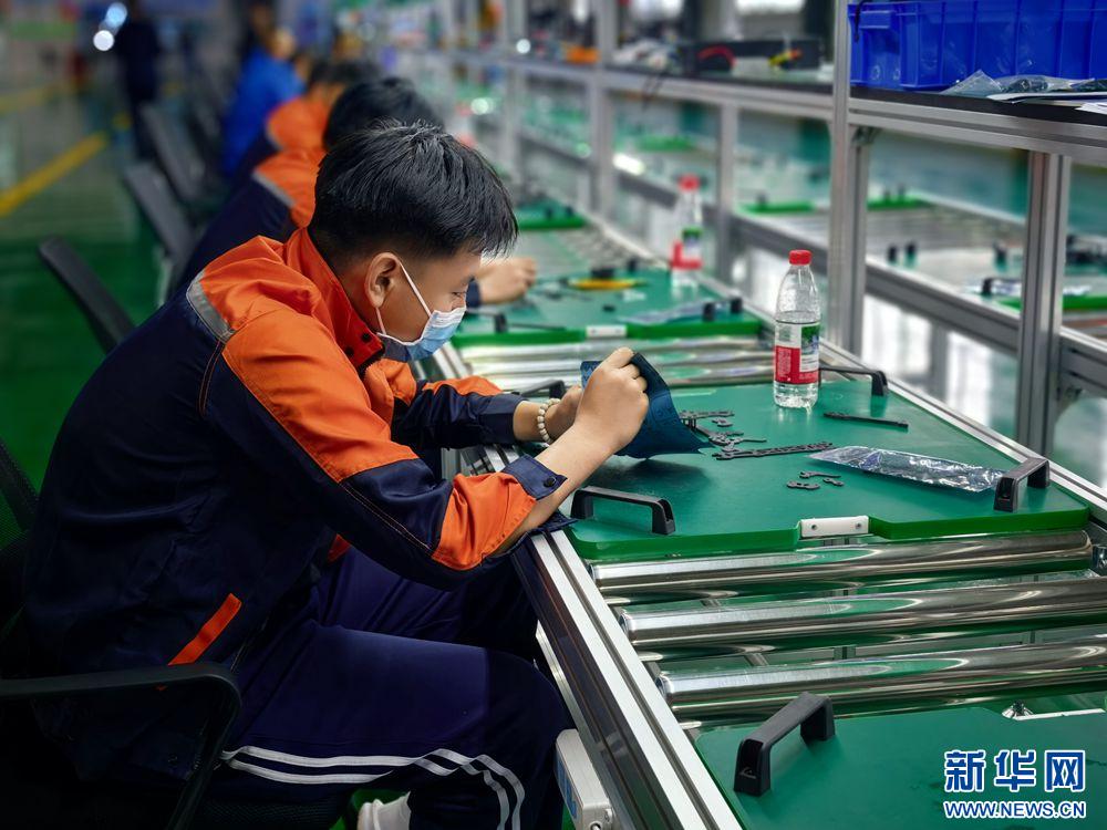 工作人員正在打磨無人機部件。新華網發(張靜 攝)