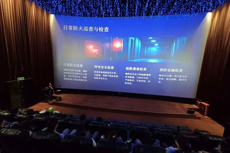 培訓結合影院密閉空間、人員密集等特點,通過國內外影院火災案例剖析,重點講解了電影院常見火災隱患、消防安全管理要點、應急疏散要領、滅火器材使用、相關法律法規等知識。員工們全程專注參與,積極互動,進一步強化了防火安全意識與應急處置能力,為公眾觀影安全提供了堅實保障。