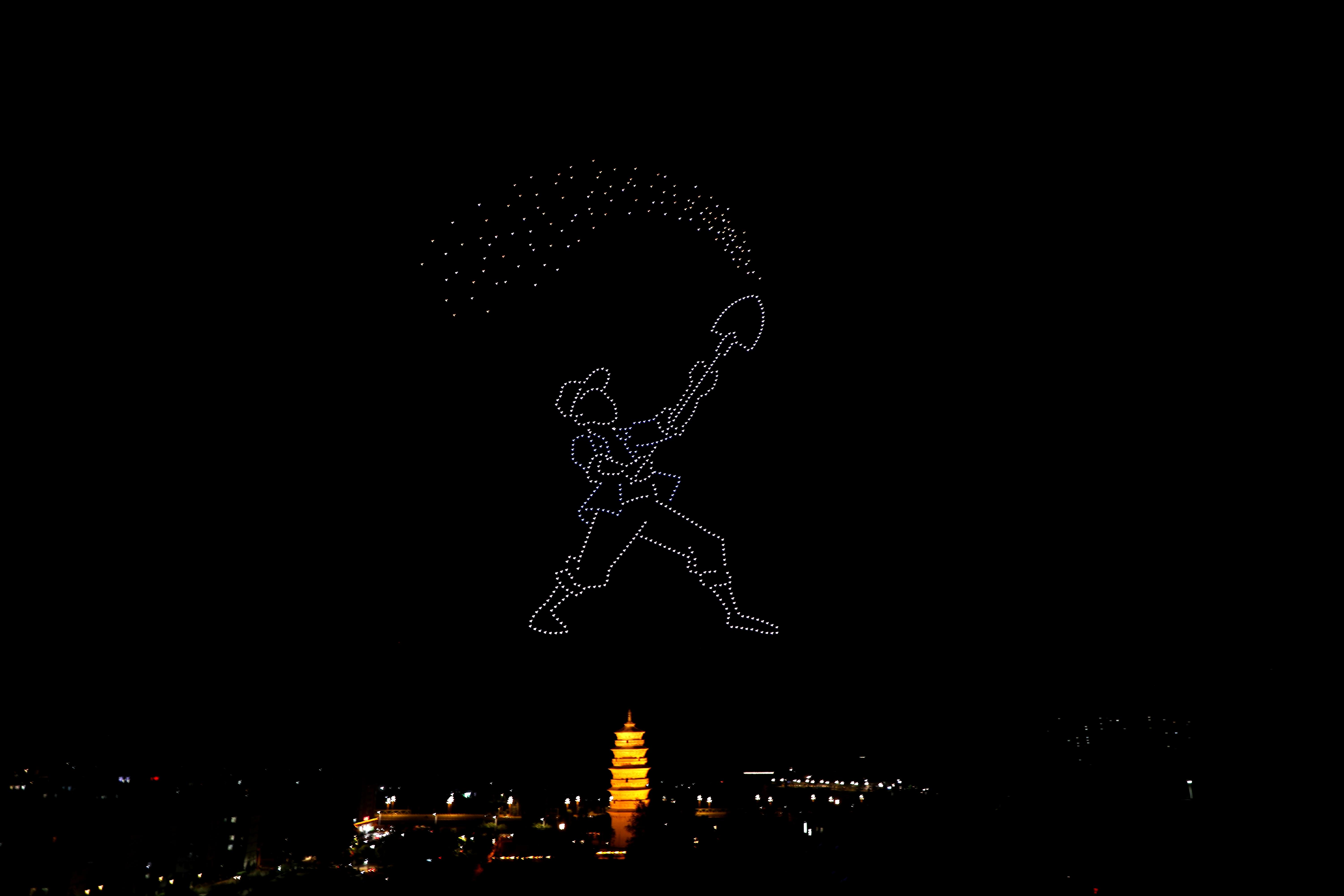 9月23日晚8時,環縣環州故城景福門廣場上空星光璀璨,一場由600架無人機聯袂演繹的“農牧交響”視覺盛宴在此震撼上演,為當地群眾和游客獻上了一份別開生面的“豐收禮贊”。