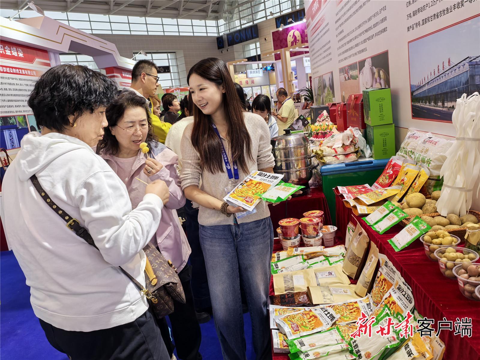 參觀者品嘗定西馬鈴薯加工產(chǎn)品。