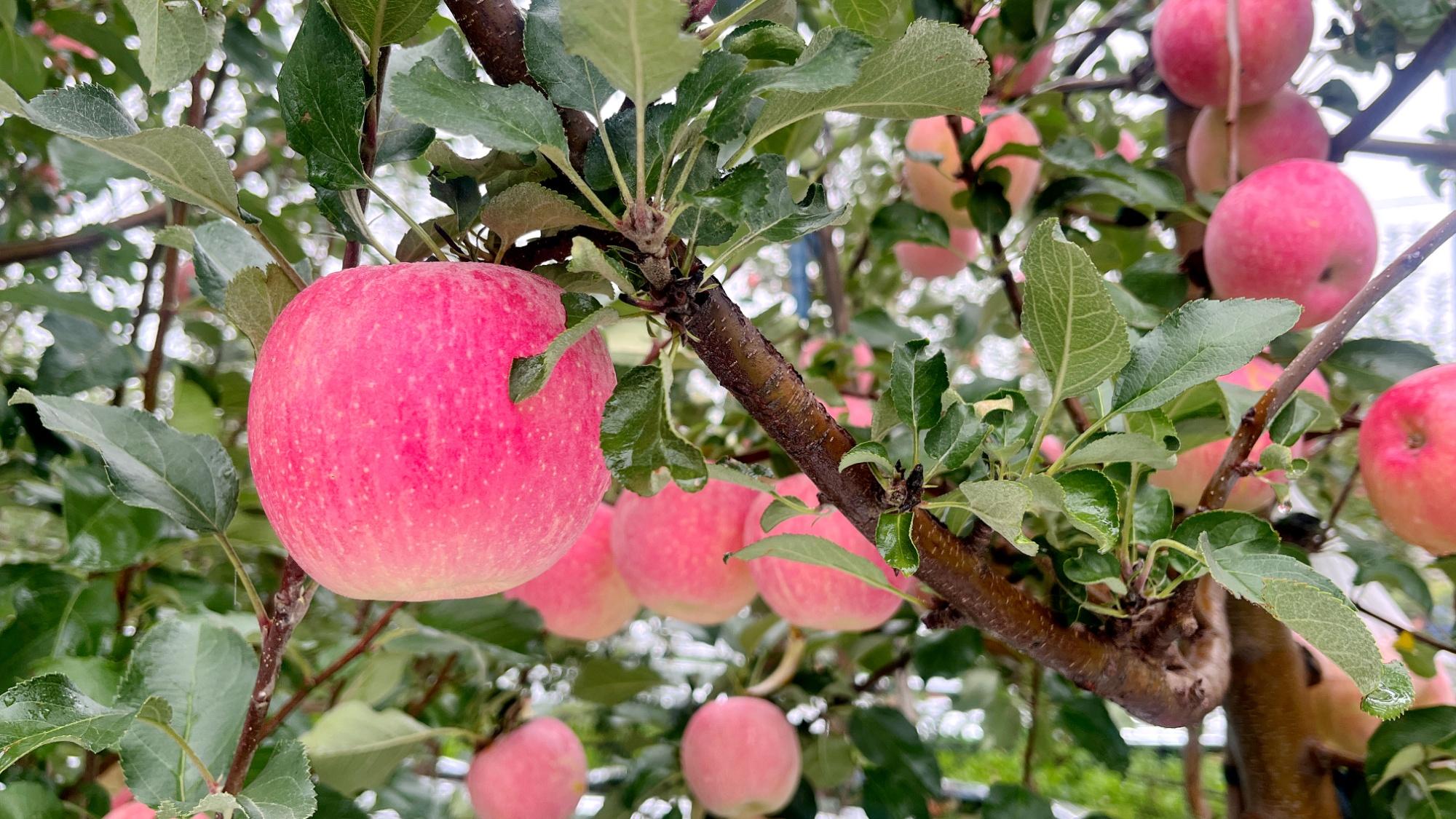 目前合作社種植了華碩、富士、煙富3號、煙富8號等多個品種蘋果,今年平均畝產預計達5000至6000斤,采收期將持續至11月上旬。