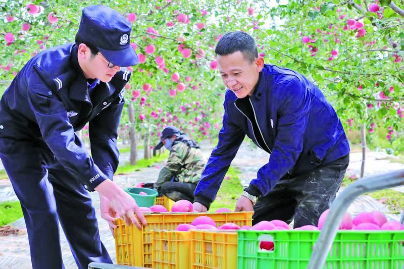 寧縣公安局利用天氣放晴的時機,搶抓時間節點,主動作為,迅速組織警力成立多支“助農服務隊”,分赴湘樂、中村、盤克等鄉鎮的辣椒地、蘋果園,協助農戶開展搶收工作。