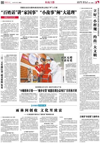 “婦女兒童要愛護,留守老人要關注;尊老愛幼好傳統,良好家風美名傳”;“提倡婚事新辦、反對高額彩禮,提倡勤儉節約、反對大操大辦”;“破除陳規棄陋習,倡導文明新風尚;紅白喜事不浪費,事前報備理事會;移風易俗除舊習……”