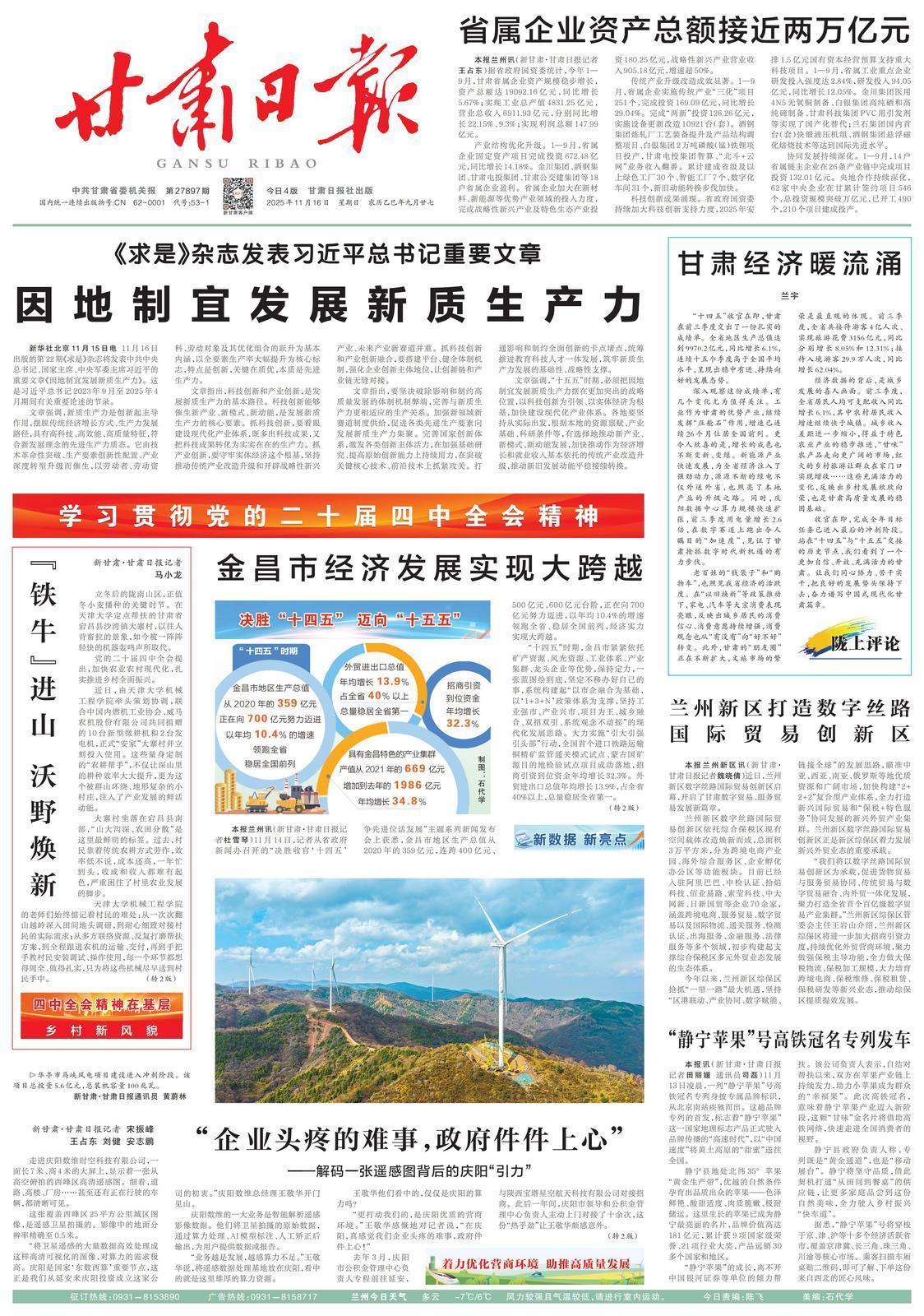 新甘肅·甘肅日報記者 宋振峰 王占東 劉健 安志鵬
