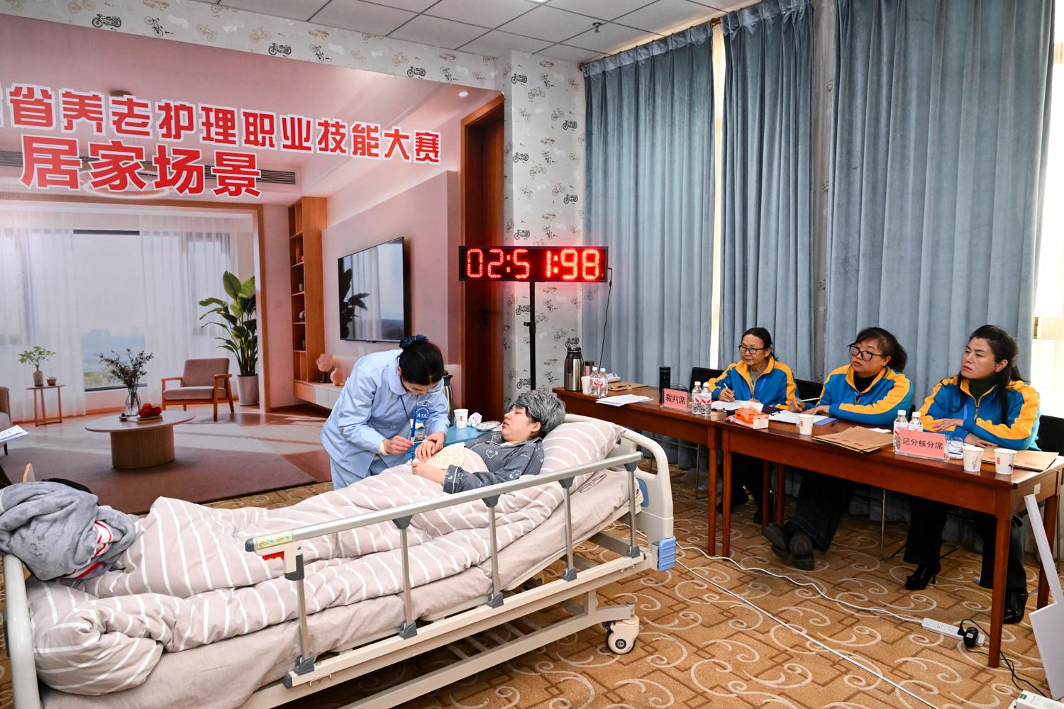 在初賽環(huán)節(jié),選手們需在居家、社區(qū)、機(jī)構(gòu)三類模擬場景中完成單項(xiàng)技能操作,每個(gè)項(xiàng)目限時(shí)10分鐘。比賽內(nèi)容包括為老年人更換床單、穿脫衣物、協(xié)助服藥、指導(dǎo)康復(fù)訓(xùn)練等,重點(diǎn)考核選手的實(shí)際操作規(guī)范、溝通技巧與應(yīng)急處置能力。