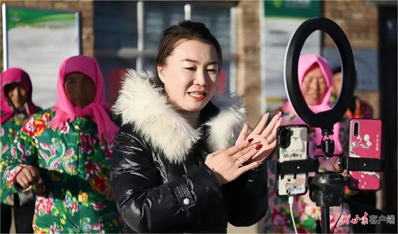楊清艷帶領村民直播賣貨。新甘肅·甘肅日報通訊員 喬潔 攝