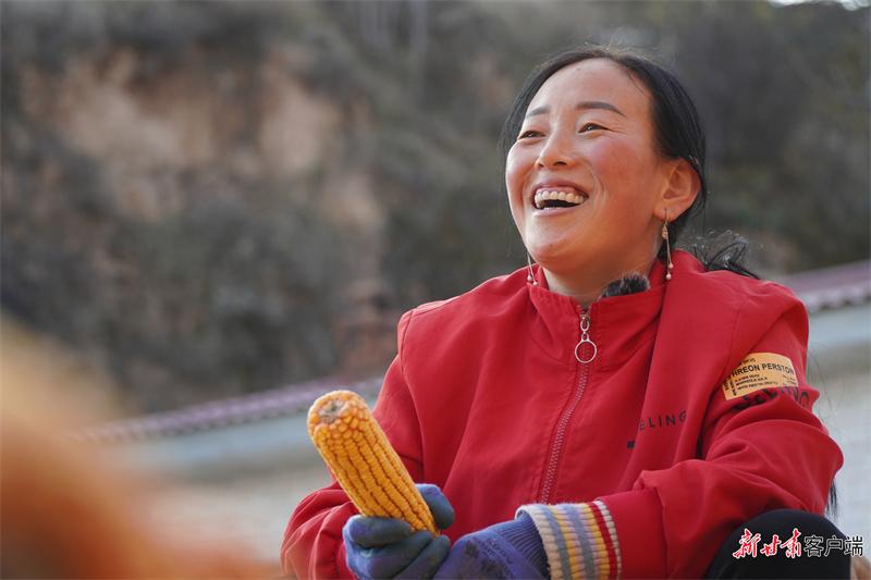 許改燕正在剝玉米。新甘肅·甘肅日報通訊員 路世玲攝