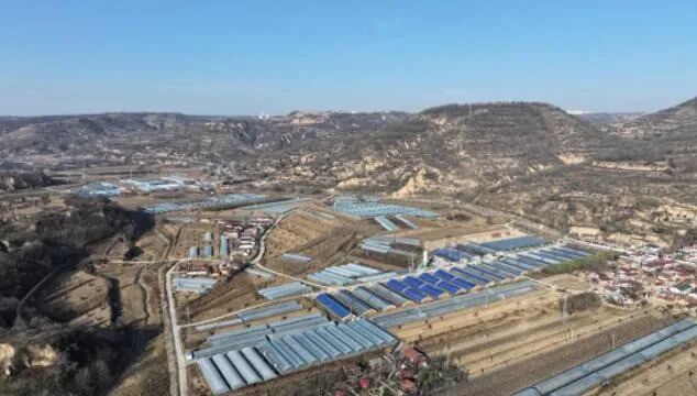 冬日合水縣固城鎮董家寺村固城川設施瓜菜生產基地航拍