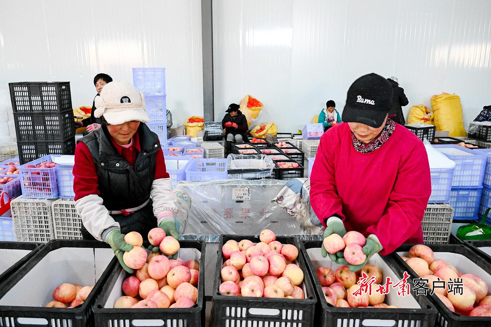 11月28日,慶城縣白馬鋪鎮大掌柜果品儲藏基地內,工人忙著分揀蘋果。目前該基地已入庫蘋果2萬噸,“鎖”住了蘋果的營養和口感,實現了蘋果保鮮供應。