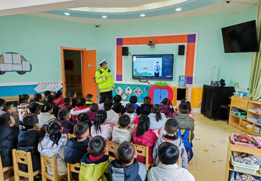 “這個紅紅的圓標志叫什么?”“紅燈停,綠燈行,黃燈亮了等一等!”通過彩色交通標志卡、動畫短片和互動問答,民警用淺顯語言講解如何安全過馬路、認識常見交通信號與標志。