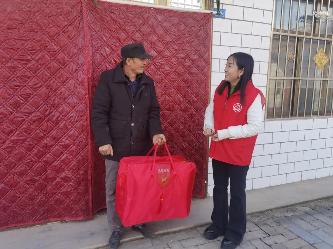 慰問環節中,為26位老人送上冬季棉被,并組織巾幗志愿者入戶看望部分老人,幫助打掃衛生,改善居住環境。