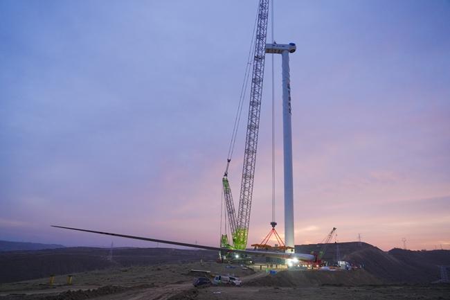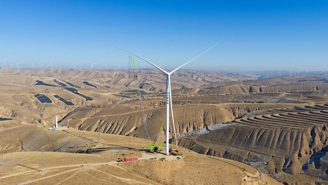 項目所在地甘肅環縣地處毛烏素沙漠邊緣,土質疏松、溝壑縱橫,山地與斷谷、盆地相間分布、地勢起伏大,進場道路狹窄,對于大型設備的運輸和就位難度挑戰不小。吊裝前,施工方專門組織技術團隊對運輸路線進行了反復踏勘和加固,確保設備安全進場。另外,針對風機吊裝對風速、能見度等氣象條件的嚴苛要求,施工方抓住窗口期的“黃金時間”,順利完成了機艙、葉輪等核心部件的精準對接。針對風機吊裝對風速、能見度等氣象條件的嚴苛要求,他們抓住窗口期的“黃金幾小時”,順利完成了機艙、葉輪等核心部件的精準對接。為了保障吊裝安全,他們反復優化吊裝方案,嚴格落實安全交底,對作業人員開展專項培訓,全程安排專人旁站監督,確保每一個環節都萬無一失。