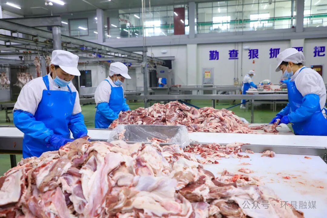 清晨,環(huán)縣中盛屠宰食品廠的現(xiàn)代化分割車間內(nèi)早已燈火通明。生產(chǎn)線上,來自環(huán)縣本土養(yǎng)殖的優(yōu)質(zhì)湖羊胴體懸掛在自動(dòng)化軌道上,緩緩移動(dòng)。身著全套工裝、佩戴口罩帽子的工人們手法嫻熟,按照標(biāo)準(zhǔn)流程對羊只進(jìn)行精細(xì)化分割。