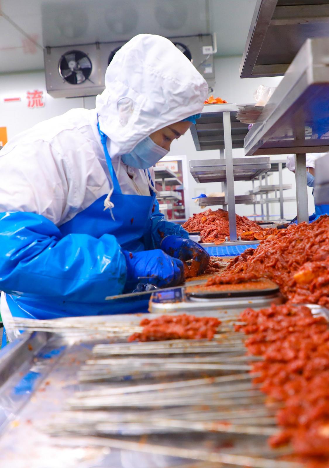 隆冬時節(jié),環(huán)縣羊肉加工銷售迎來旺季。在中盛屠宰食品廠的現(xiàn)代化分割車間內,工人熟練地將優(yōu)質湖羊分割成肋排、羊腿等各類產(chǎn)品,日加工量達數(shù)百只,隨后通過冷鏈迅速發(fā)往全國各地乃至海外市場。與此同時,在盛飛豪公司的加工車間里,工人們手工穿制羊肉串,日產(chǎn)能約5萬串,產(chǎn)品暢銷國內多個城市及香港地區(qū)。
