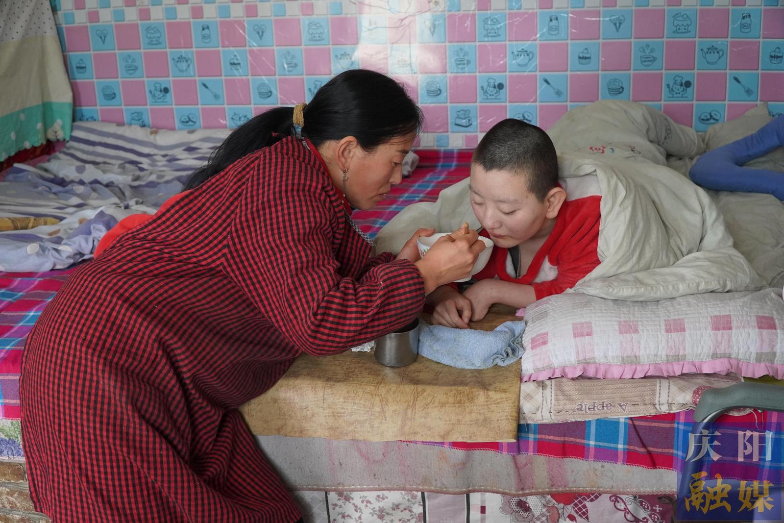 許改燕正在給大女兒喂飯。 慶陽(yáng)融媒記者 路世玲攝