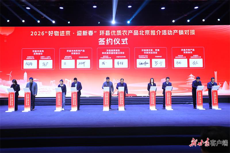 新甘肅客戶端慶陽1月16日訊(新甘肅·甘肅日報記者 安志鵬)1月16日,“好物進(jìn)京迎新春”環(huán)縣優(yōu)質(zhì)農(nóng)產(chǎn)品推介活動在北京舉行。活動通過“品牌推介+產(chǎn)銷對接+直播互動”等模式,推動環(huán)縣優(yōu)質(zhì)農(nóng)產(chǎn)品北上擴(kuò)圈,持續(xù)提升品牌影響力與市場競爭力,現(xiàn)場簽訂農(nóng)特產(chǎn)品購銷協(xié)議或采購合同總金額3.55億元。