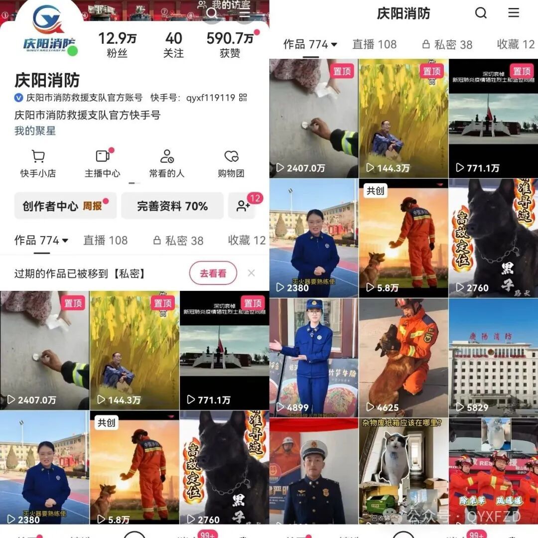 據(jù)了解,“慶陽消防”官方快手賬號已累計發(fā)布原創(chuàng)短視頻774條,收獲點贊收藏590.7萬,圈粉13萬人,憑借扎實的內(nèi)容輸出和廣泛的社會影響力脫穎而出。近年來,慶陽支隊高度重視政務(wù)新媒體運維建設(shè),始終秉承“發(fā)好消防聲音、講好消防故事、傳播消防知識正能量”的宣傳宗旨,主動順應(yīng)媒體融合發(fā)展趨勢,堅守移動優(yōu)先策略,構(gòu)建起涵蓋抖音、快手、視頻號、微博、微信及官方網(wǎng)站等10余個平臺的全媒體宣傳矩陣。截至目前,支隊已通過各平臺發(fā)布消防信息200余萬條,總閱讀量突破20億次,用指尖上的“政能量”搭建起消防工作與群眾溝通互動的橋梁,全方位展現(xiàn)了慶陽消防隊伍的良好風(fēng)貌。