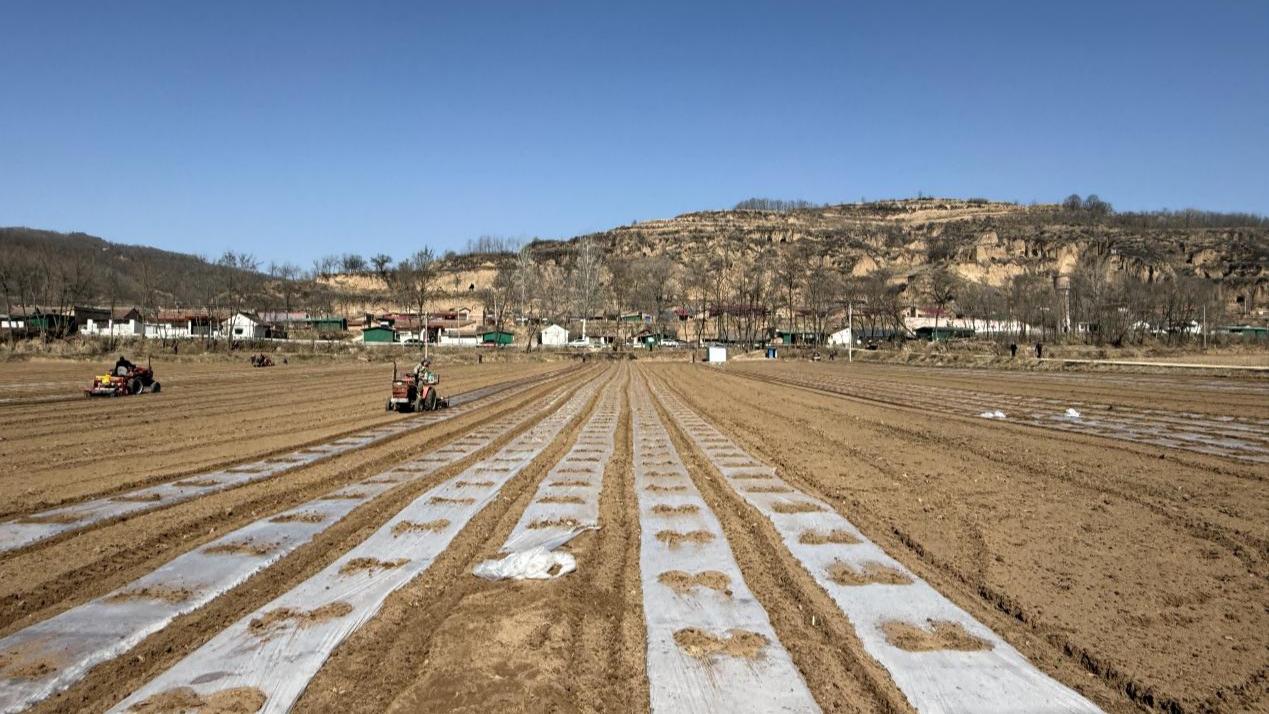 在西坡鎮(zhèn)石家灣子村的田地里,覆膜機轟鳴作響,來回穿梭,村民們緊跟機械整地、施肥、覆膜、壓土,一道道工序有條不紊。一壟壟覆好的地膜在陽光照耀下銀光點點,宛如為田野披上了“春裝”。
