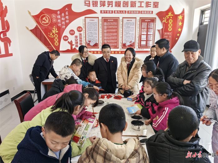 馬銀萍依托個人勞模工作室宣講全國兩會精神。
