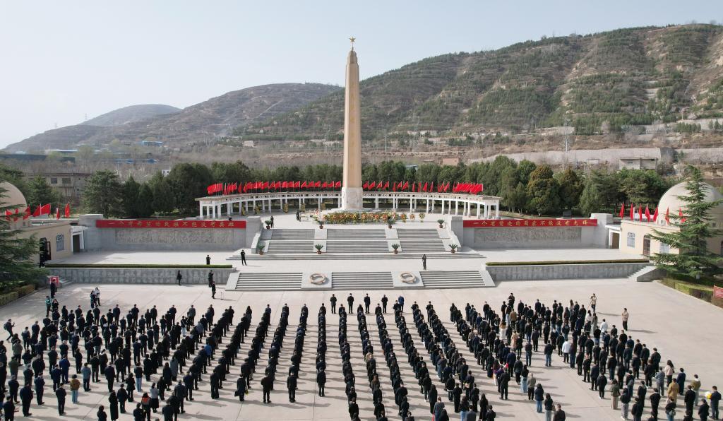 4月3日,人們?cè)谔m州市烈士陵園緬懷先烈(無(wú)人機(jī)照片)。新華社記者 陳斌 攝