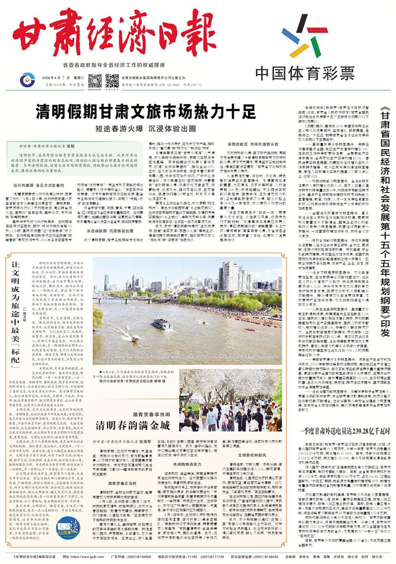 清明時(shí)節(jié),追思寄情與踏青賞景在隴原大地完美交融。從黃河岸邊的休閑步道到丹霞深處的杏花林間,涌動的人潮勾勒出甘肅春日的美好圖景。今年清明假期,甘肅文旅市場供需兩旺,傳統(tǒng)祭掃與春日休閑相得益彰,展現(xiàn)出強(qiáng)勁的消費(fèi)動能。